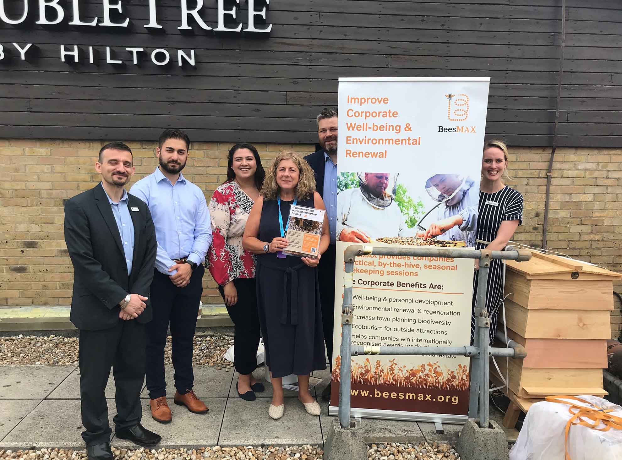 A hotel providing a rooftop for the rehmoing of a honey bee colony after a rescue.
