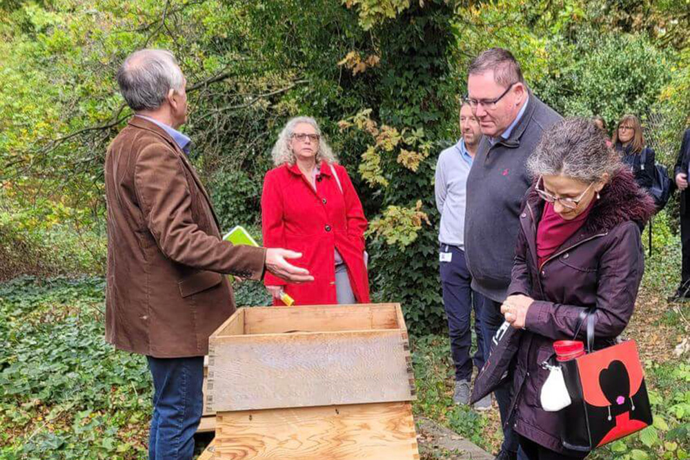 Barwell kindly provide us with a wooded area on their industrial estate to home a rescued bee colony from chimney pots.