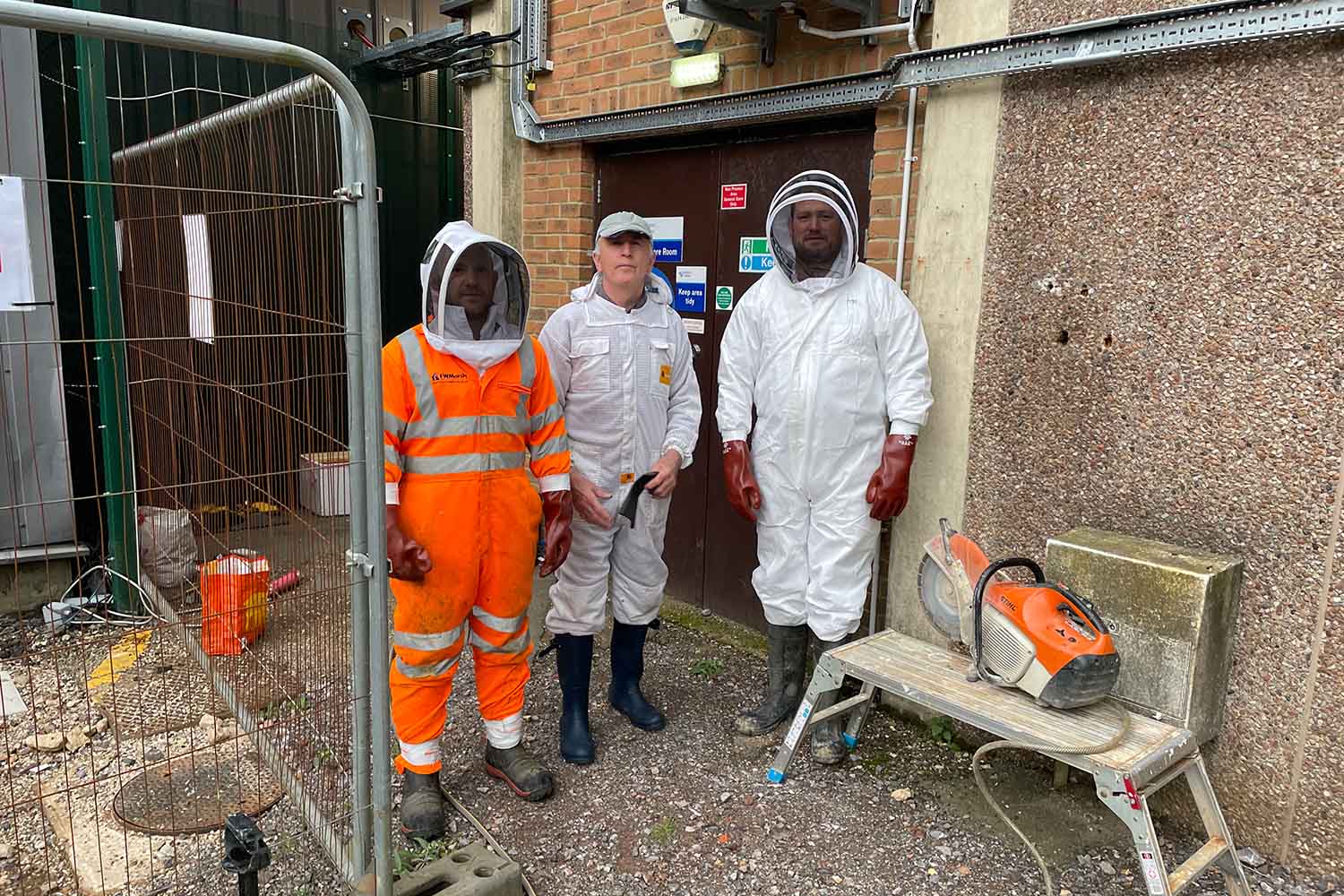 Tree Bee Rescue and Southern Water working together to rescue a colony in wall cavity for rehoming.